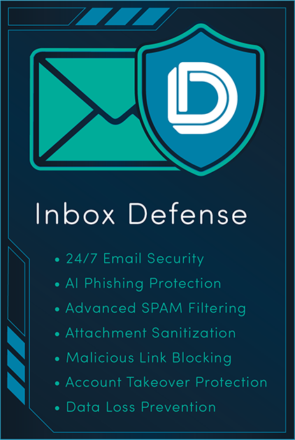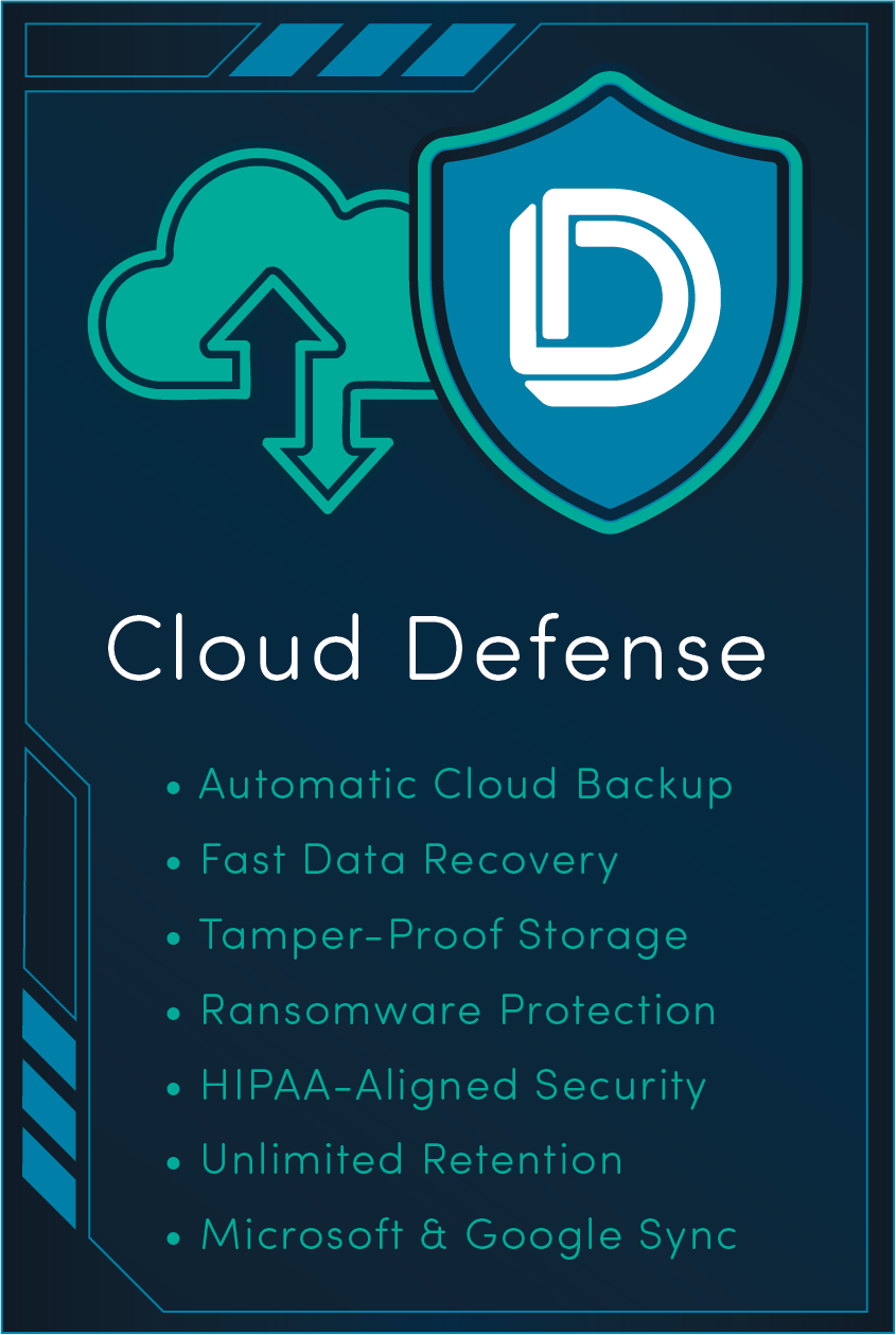 Inbox Defense protects your email accounts. Device Defense protects your computers. Cloud Defense protects your files. Together, they form a shield that protects your practice.
